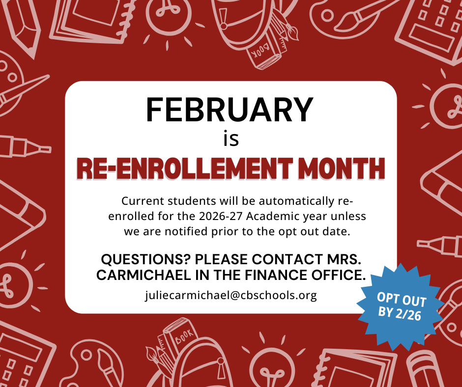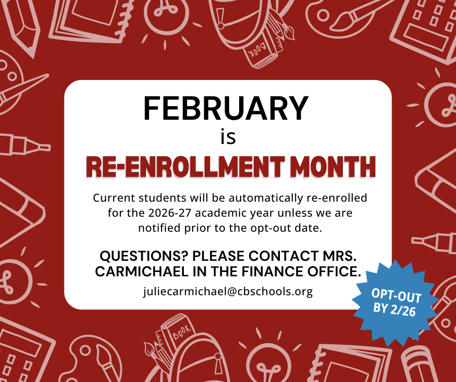 To receive a discount on registration - current Students will automatically be re-enrolled for the 2026-2027 school year.